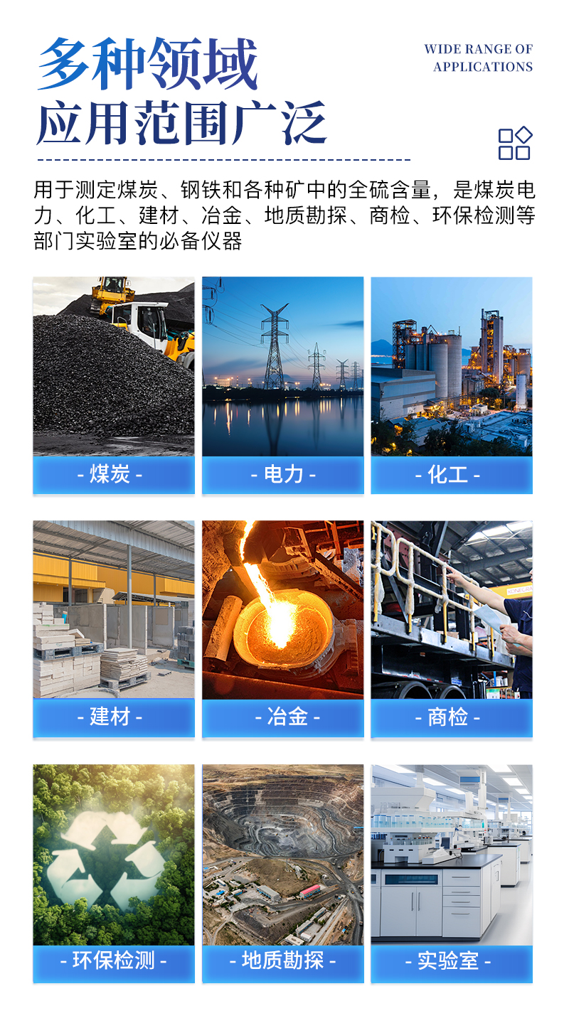本公司生产的系列微机全自动定硫仪,主要用于测定煤炭、钢铁和各种矿中的全硫含量,是煤炭、电力、化工、建材、冶金、地质勘探、商检、环保检测等部门实验室的优选必备仪器。